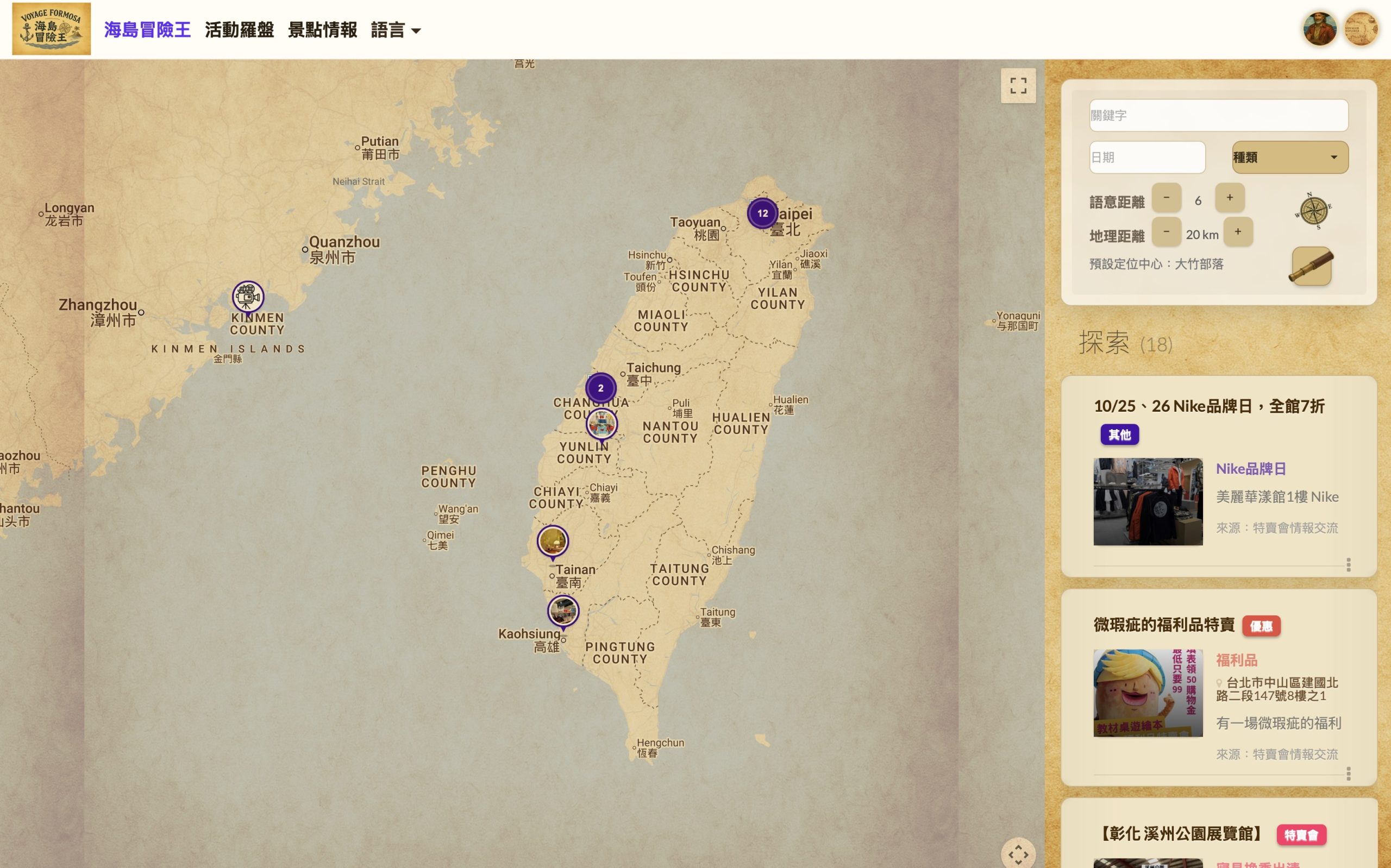 輸入任意關鍵字,船長依據語意相量計算最符合的活動資訊
